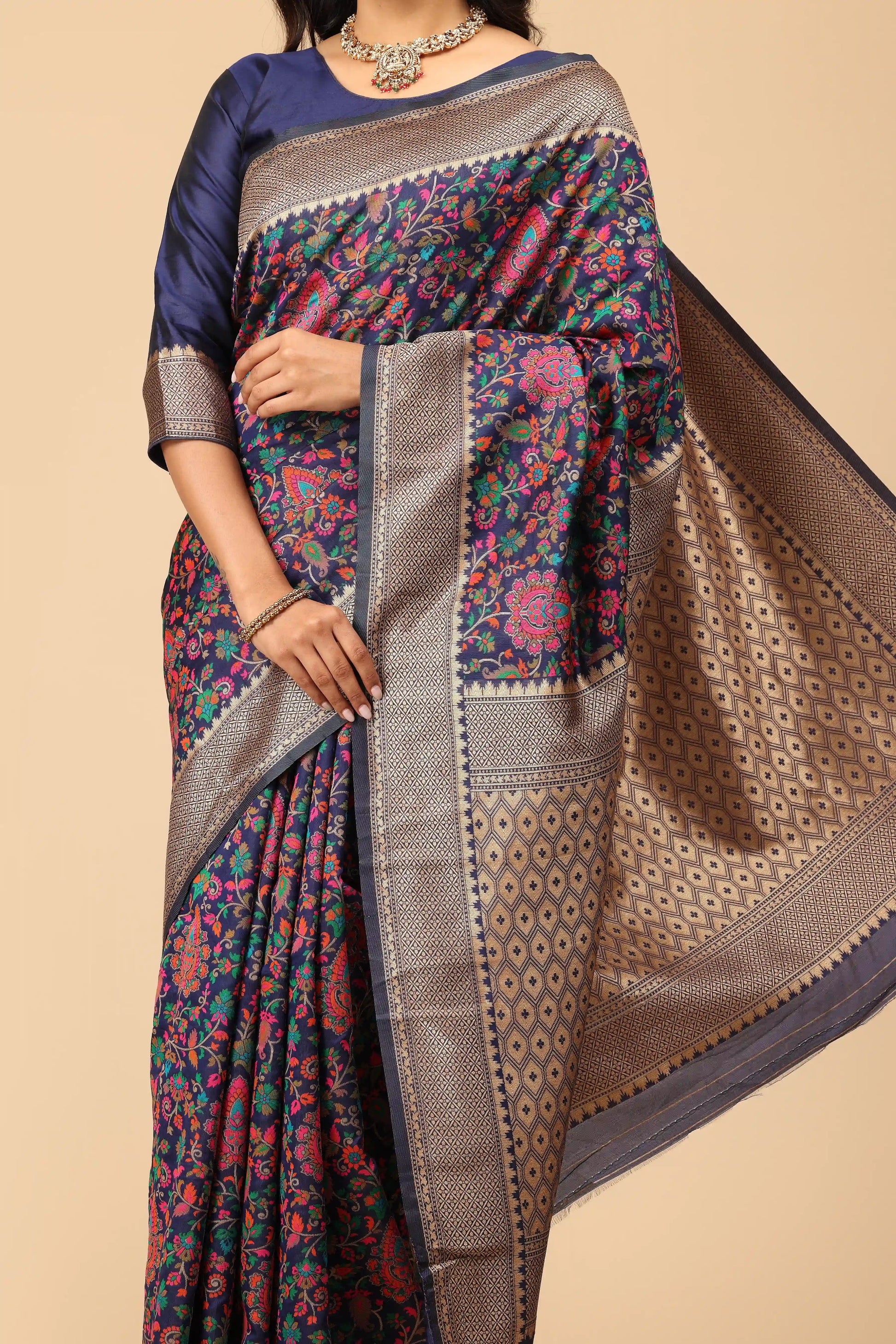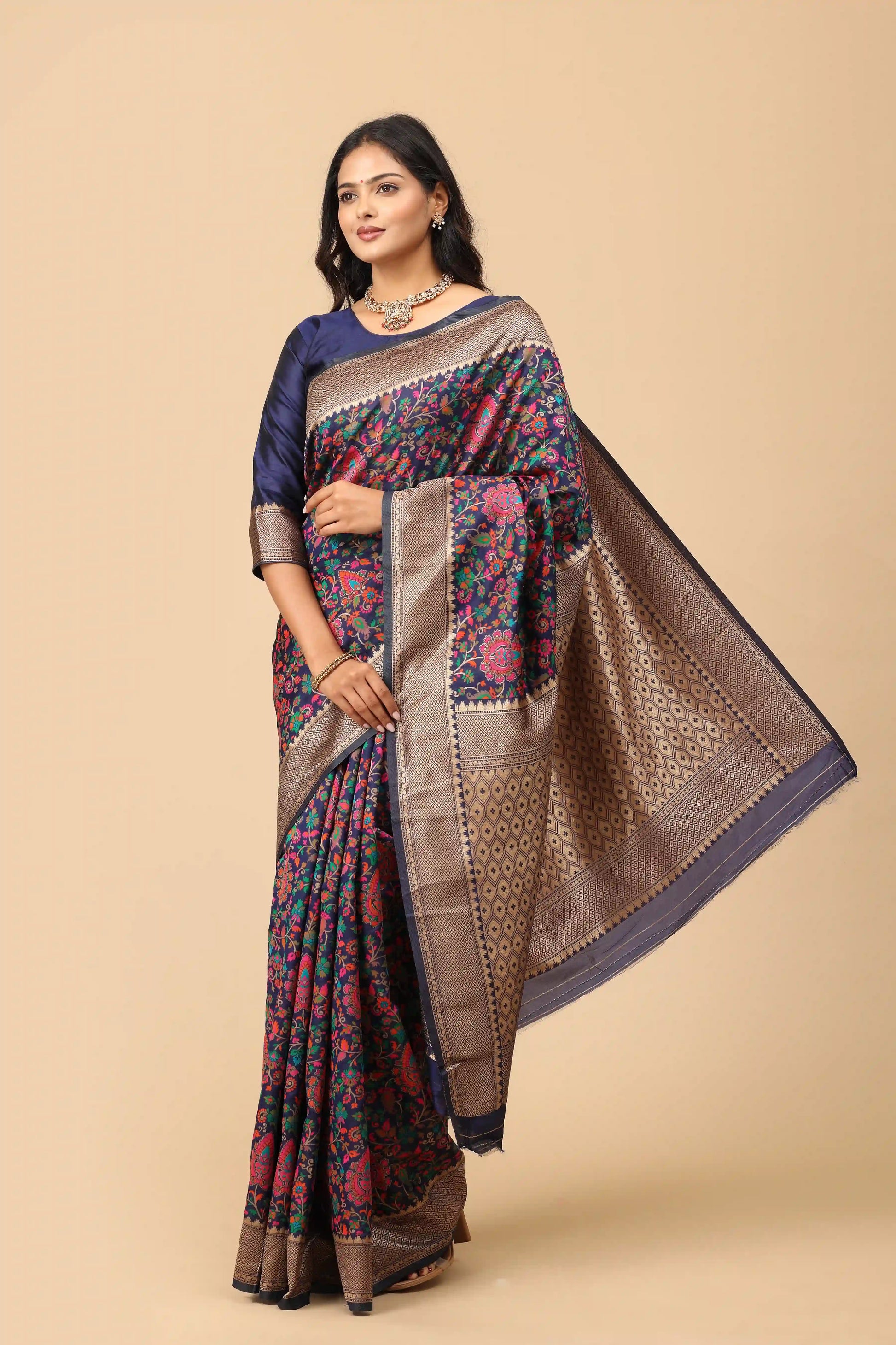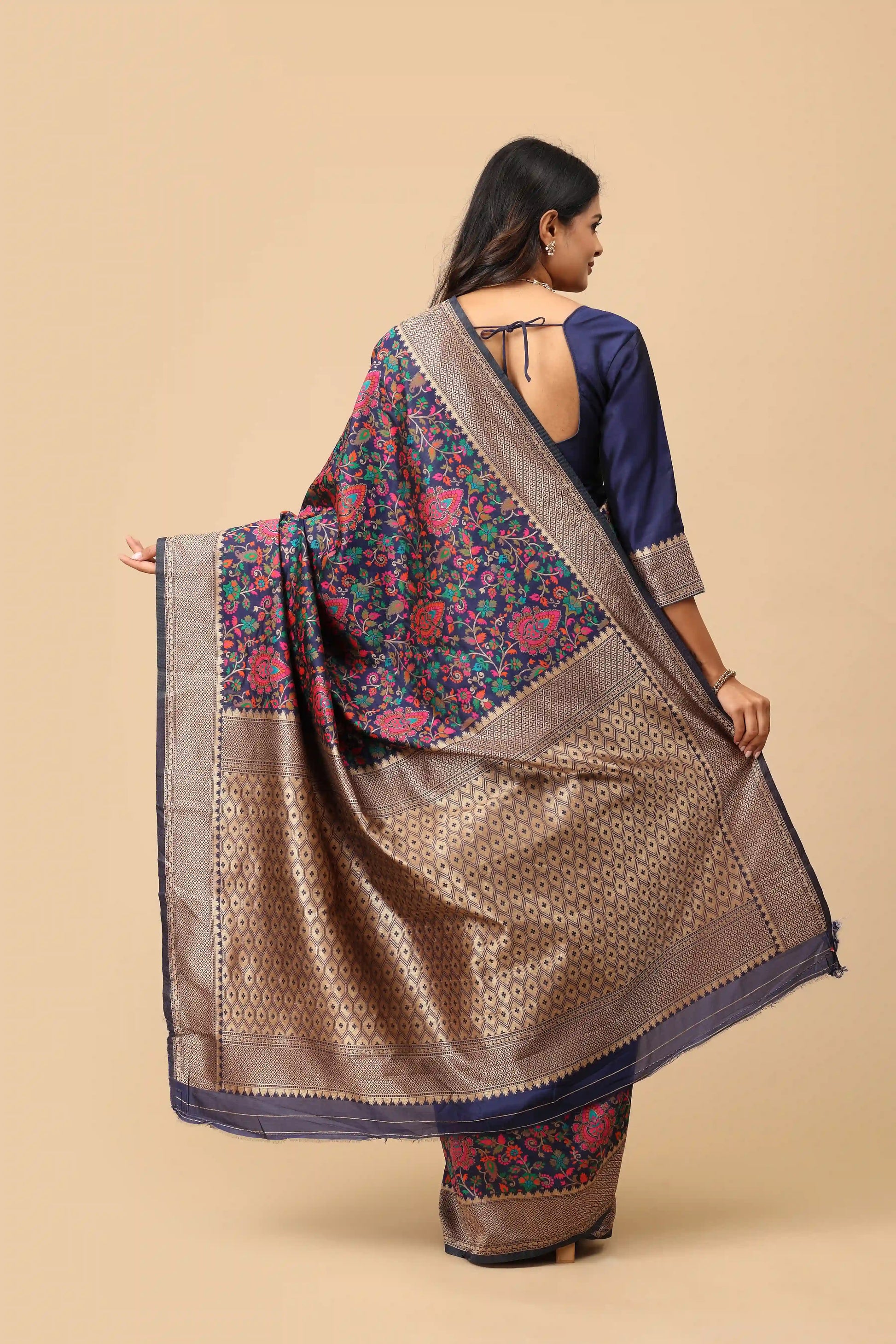 • Storage: Store in a padded garment bag. It is highly recommended to hang this saree on a sturdy, padded hanger to prevent the weight of the sequins from causing permanent creases in the fabric.